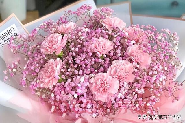 粉满天星寓意浪漫的爱情,花语是不可或缺的配角。紫满天星寓意思念之情,花语是思念想念。红满天星寓意真爱,花语是真爱。蓝满天星寓意青春和温柔,花语是真心地喜欢你、梦境和清纯。白满天星寓意浪漫纯洁,花语是爱如繁星。粉薰衣草寓意浪漫少女,花语是等你爱我。粉勿忘我寓意浪漫,花语是永恒的爱和浪漫的爱。蓝勿忘我寓意永恒不变的真心,花语是真心的爱。