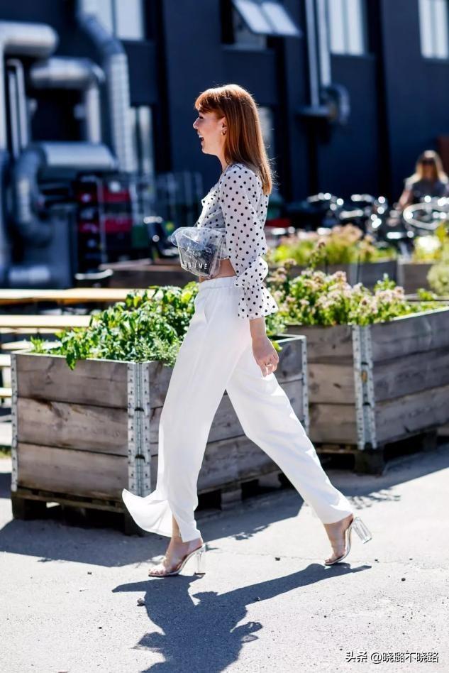 开衩西装裤足够化解无聊,衬衫就用基础款白色,每日通勤可以不费脑地穿。搭配细带凉鞋远比包头鞋更清凉更提升质感,务必记得收束腰线。