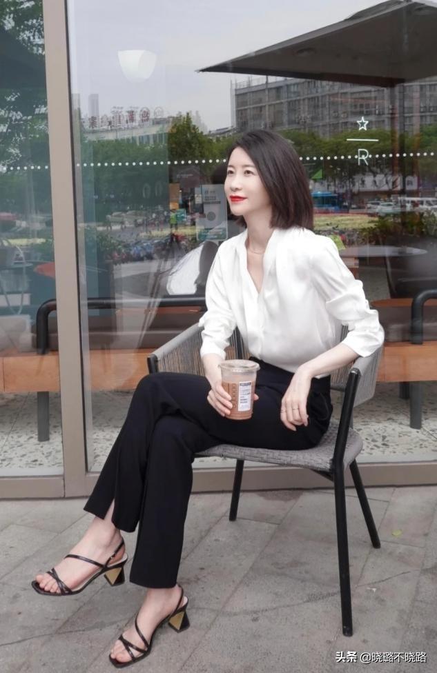 tip:藏着掖着没有高级感,舒适随性才更有气质。通勤穿搭中领间留点空白吧,凉鞋也大胆穿起来,没有拘束感才高级。