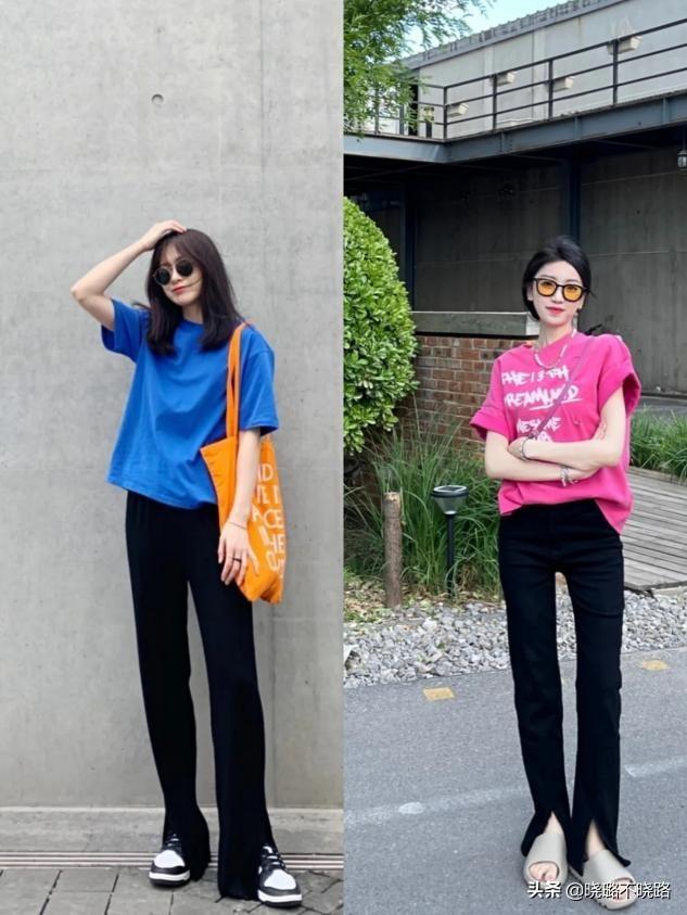 略微宽松的T恤和开衩长裤,好穿好搭,总是能够凌驾于生活日常的。纯色/印花T恤×纯色开衩裤,总是元气又舒适的。运动鞋一蹬,帆布包一挎,还不是活力少女?