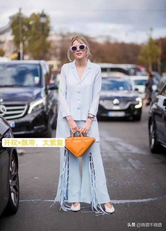 都说长度长一分,成熟多一分。九分长的开衩裤缺少一点朝气?下身收敛,上身大胆一点也未尝不可。