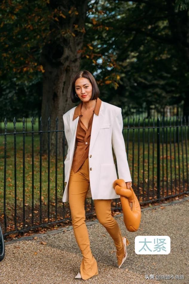 裤筒是宽是紧,对胖瘦的表达是最直观的。太紧,箍得腿部都出褶皱,赘肉遁无可遁,搭配开衩也无法穿出松弛自如的高级感。