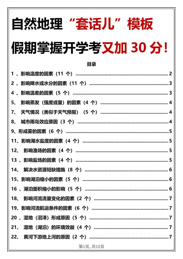 但综合题完全不一样,地理很考验知识面,也很考验文科生的理科思维,所以非常能够分出拔尖者和优秀者,优秀者和一般者的区别。要想高分就要有一份完整全面的模板。