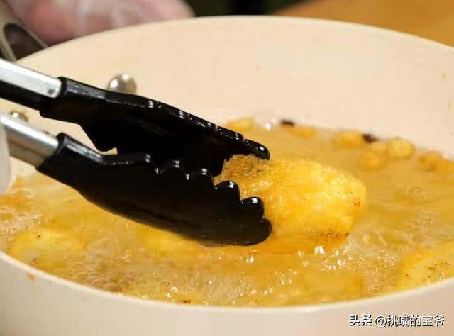 同一油锅可稍降温至摄氏150度,用酥炸粉依比例调成粉浆,将香蕉裹上面糊,炸至上色即可起锅。