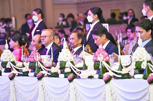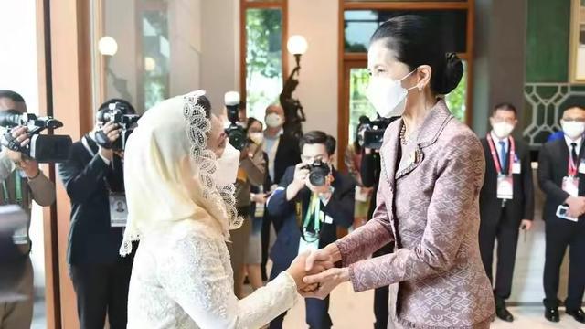 配上女人味十足的珍珠项链后,越南第一夫人真的是将女神范展现得淋漓尽致,虽然身材不如东道主泰国夫人那么高挑,但身材仪态挺拔,再加上服装色彩亮眼,分分钟就抢走了风头,成为本次活动的最大赢家。