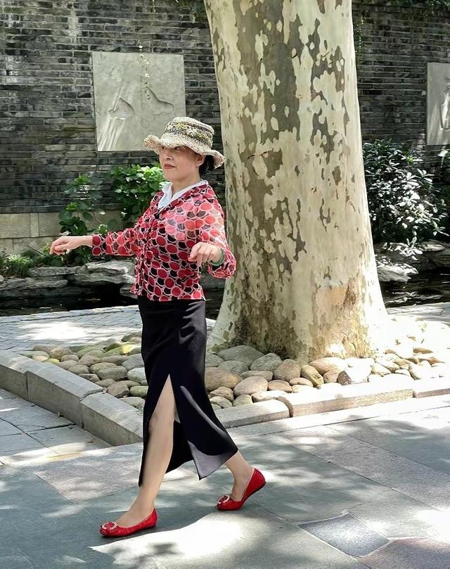 但俗气并不是因为颜色或者印花,而是没有考虑到造型整体的和谐,损失了美感,用上这位奶奶的几个搭配技巧就能解决这个问题。