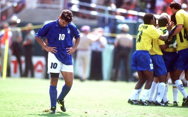 巴乔(左)落寞的身影是许多人对于世界杯的经典记忆。 资料图/视觉中国