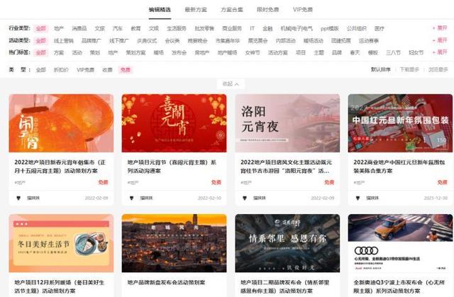方案都是实时更新的,涵盖的内容也很丰富,常用的房地产、商业地产、汽车、快销品牌等各行业,各节点的方案都有,质量也很高,基本上可以套套模板就能直接用了,有免费的也有付费的,看大家各自需求。