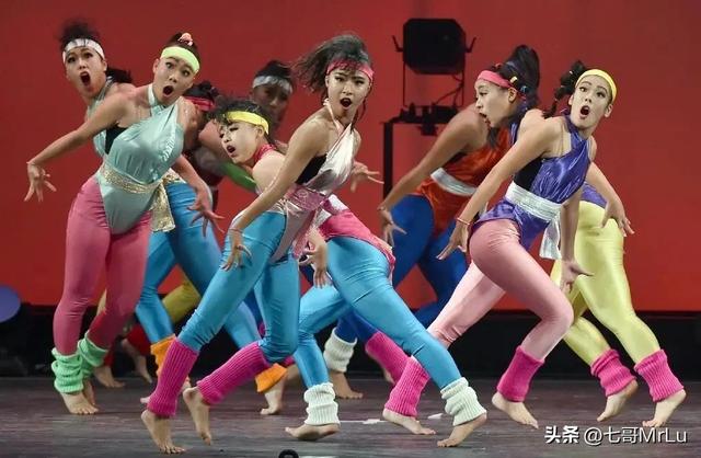 一班十多岁少女完整重现 80 年代舞蹈,不只是动作,连铁丝刘海、浓厚的妆容、极具时代特色的垫肩外套和一步裙,都原汁原味呈现。