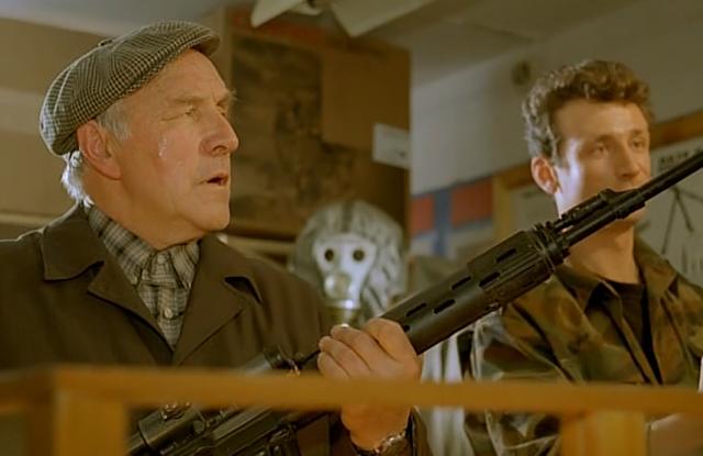 刚开始商贩并没在意,可是在听到爷爷是一名老兵的时候,商贩直接将爷爷带到一个仓库,另一名男子在询问过爷爷后,就带他去到另一个地方,这个地方是一个地下室,在这里爷爷挑选了一把狙击枪,在试枪的时候,爷爷百发百中。