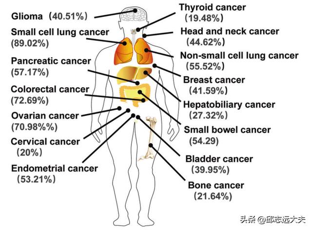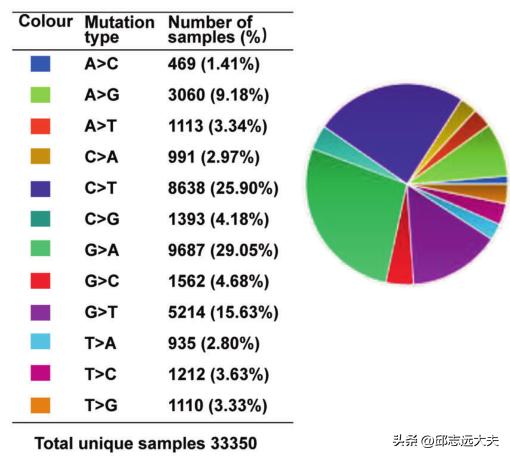 证据表明,不同肿瘤的p53突变谱不同。癌症基因组学数据库显示,来自10,000名癌症患者的肿瘤组织样本中,p53突变的频率为42%。但不同类型肿瘤的突变频率不同,小细胞肺癌突变频率为89%,结直肠癌突变频率为72%。而在甲状腺癌、宫颈癌和骨癌等恶性肿瘤中,p53突变的频率较低(图3)。在肺癌和肝癌中,G:C到T:A的错位是最常见的替换。在结直肠癌、脑肿瘤和白血病中,突变大多发生在CpG二核苷酸热点。在食道癌中,A:T碱基对突变更为常见。此外,同一器官中不同肿瘤亚型的Tp53突变谱也不同。