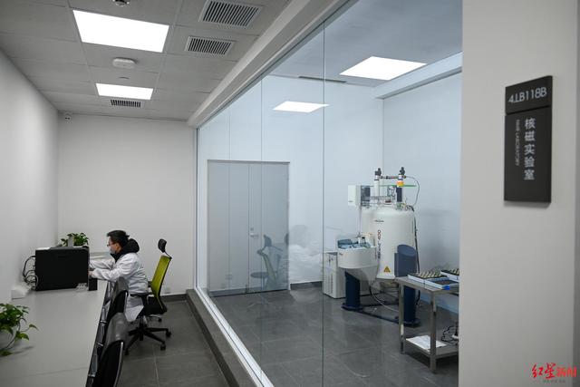 在新的大楼里,除了酶标仪等设备,还有个“大家伙”——用于小分子化合物结构解析的核磁共振波谱仪。每个最终合成的化合物都经过多个中间体的合成,而经过核磁共振波谱仪的检验,合成的每一个新分子、每一个步骤、每一个结构都能得到更加精准的检测。