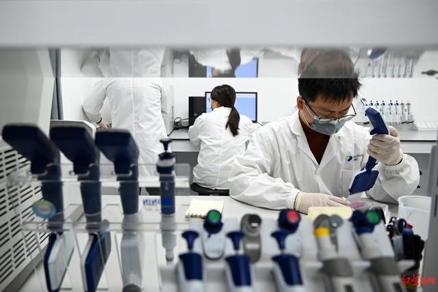 四川省成都市赛诺哈勃药业(成都)有限公司,工作人员正在实验室进行样本分析