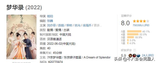 所以从某种程度上来说,《梦华录》的分数也有些虚高,甚至一度窜上8.8的高分。不过到了中后期,因为剧情有些崩坏,再加上营销失败、观众冷静下来后,这部剧的分数慢慢跌落到了8.0分。