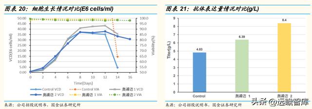 从结果对比看,公司的定制细胞培养基和工艺优化方案下细胞生长情况、抗体表达量均优于进口培养基。