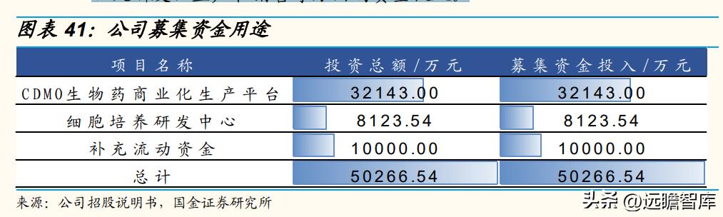 公司募集资金重点投向公司 CDMO 生物药商业化生产平台、公司细胞培养研发中心项目和补充流动资金。