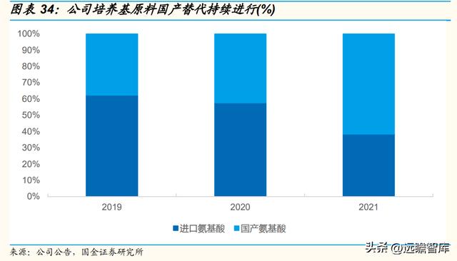 近年来公司在严格遴选原材料供应商的基础上,不断推进氨基酸原材料的国产化。截至 2021 年,公司培养基产品生产中,超过 60%的氨基酸已使用国产产品,以及对仍在使用进口产品的原料也在进行国产替代测试。