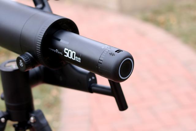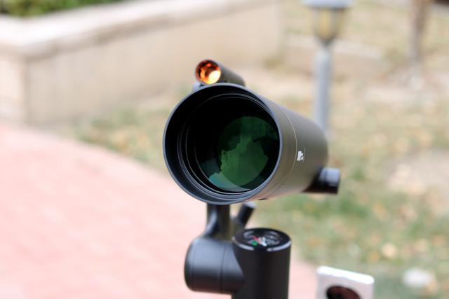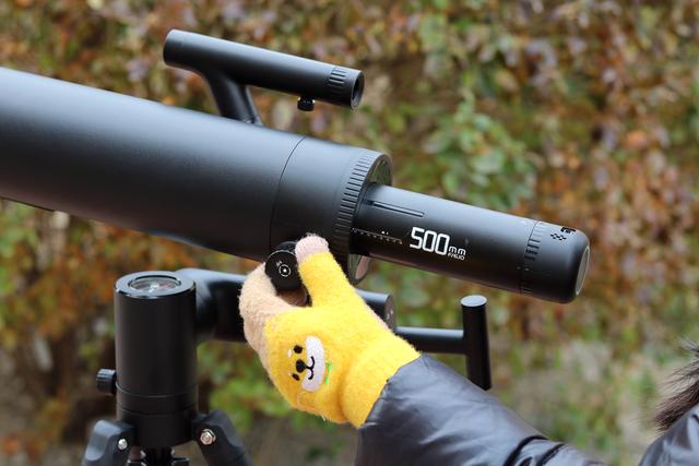主镜筒采用金属机身设计,并经过磨砂工艺处理,黑色的配色看上去显得简约低调,机身表面也比较耐脏。主镜采用了83mm的大口径,更大一点的主镜口径,可以带来更高的进光量。另外主镜还采用了4层FPC光学镀膜,可以减少光线进入物镜后的折射,从而提高光线的透过率,让望远镜能够看到视野更广阔,同时画面也更清晰。主镜的光圈是f/6.1,光学焦距是500mm+,关于成像效果,后面会给大家详细地展示。