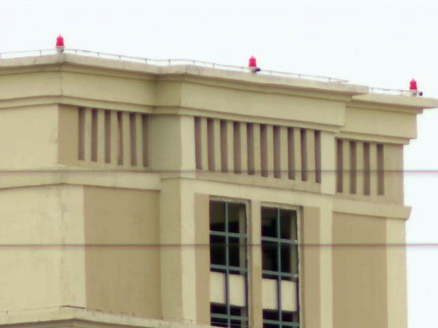 这一组是观测距离2KM之外的居民楼,楼顶上面的钢筋围栏、红色的信号灯都能清晰的看到。