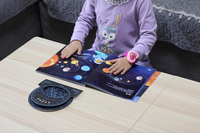 值得一提的是,里面还有一套“你好宇宙”的彩色绘本,里面有丰富的宇宙天文知识,比如说地心说、日心说等等,能够进一步激发孩子的学习兴趣。