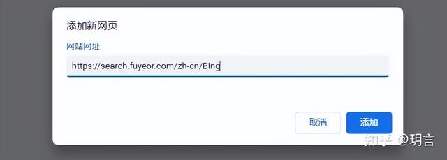 在其中输入:https://search.fuyeor.com/zh-cn/ 然后点击“添加”即可。