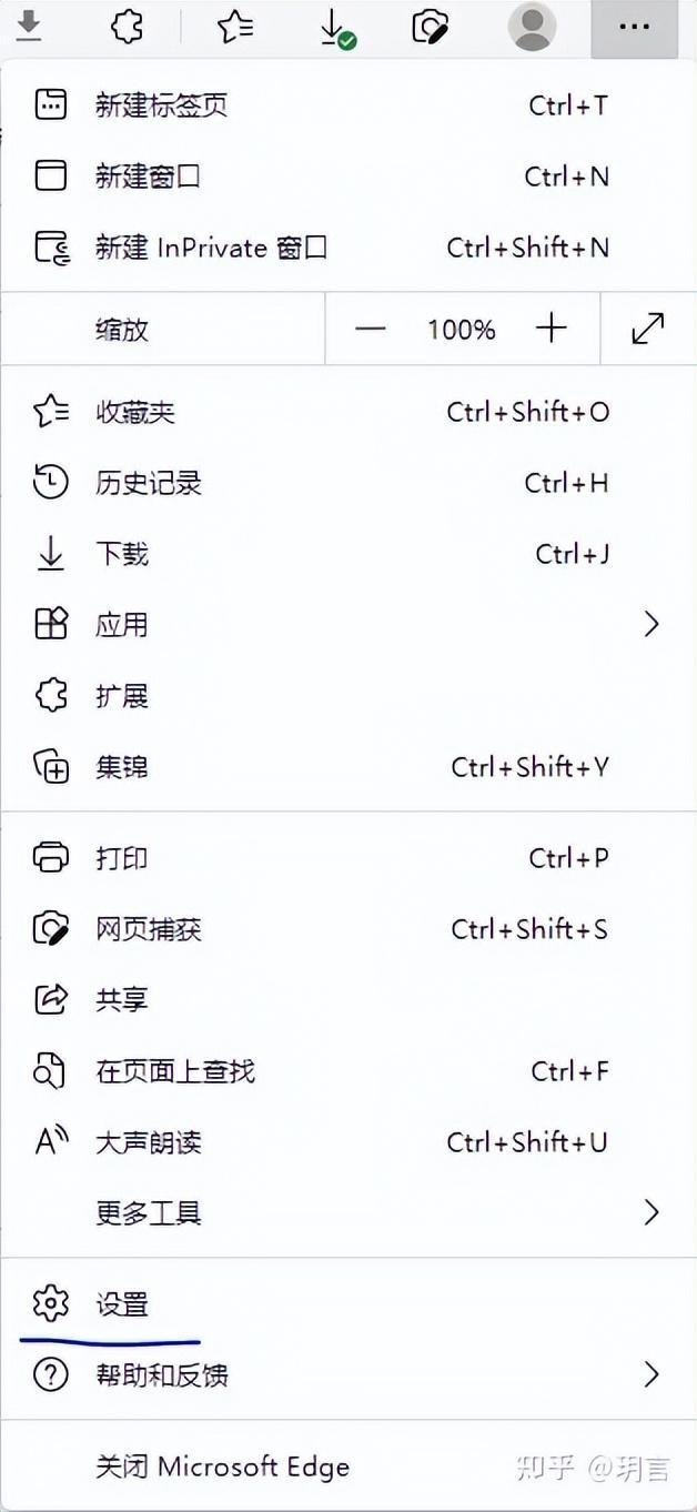 点击浏览器右上角三个点( · · · )的图标;在下拉菜单中找到设置[1]。