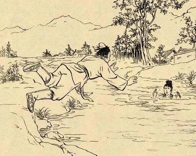 他正走着路,却听见附近传来救命的声音,他赶紧顺着声音跑过去一看,只见一个老妇人失足掉进河里,在水里拼命挣扎着。