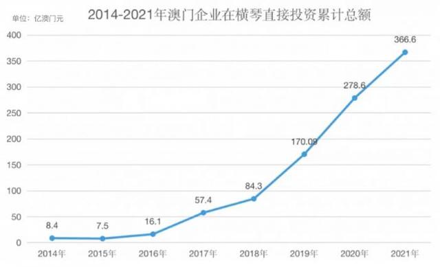 据记者梳理,自2014年有关于澳门企业在横琴直接投资累计总额统计以来,8年间,澳门企业在横琴的直接投资累计总额增加了近43倍,从8.4亿元涨至366.6亿元。