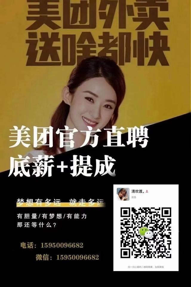 美团招暑假工或者全职,做满两个月奖励1000(纯新骑手)提供车辆,18-48岁。电话15950096682