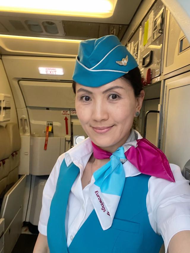 胡胡在欧洲之翼做空乘。受访者供图