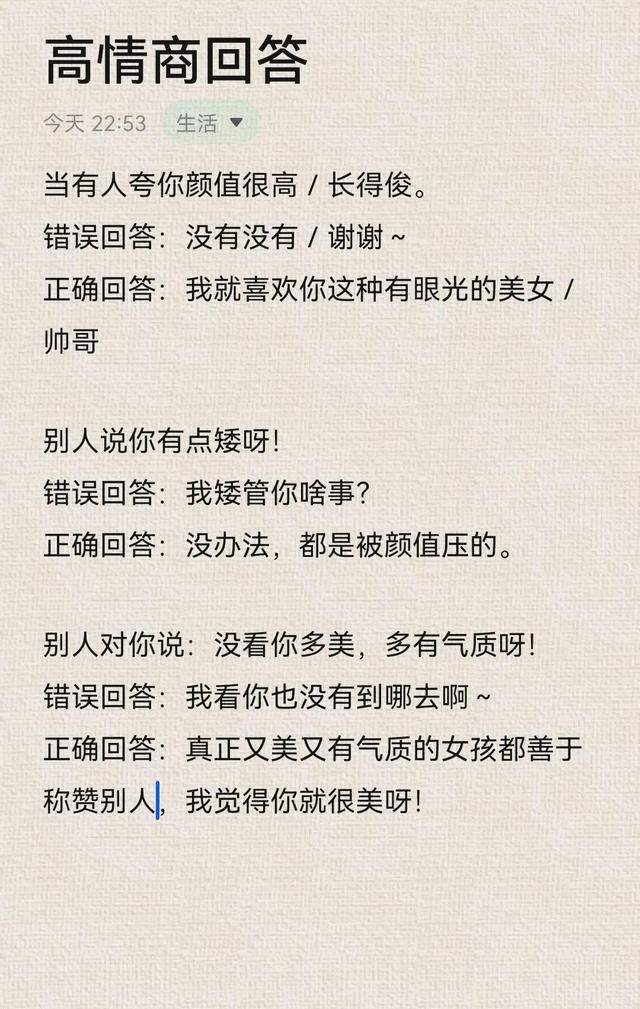 正确回答:真正又美又有气质的女孩都善于称赞别人,我觉得你就很美呀!