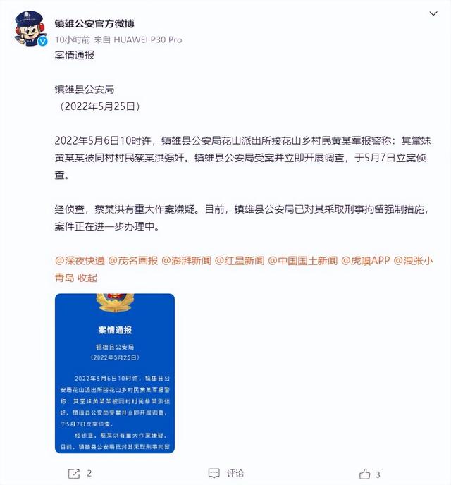 随着此事引发广泛关注,当地警方也及时发布案情通报。警方表示,经过侦查,蔡某某有重大作案嫌疑,目前蔡某某已经被采取刑事拘留强制措施。