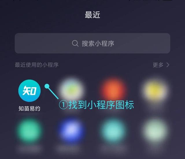 第一步,找到小程序图标。 在微信通知栏上方下拉,搜索“知苗易约”四个字,找到对应的小图标点进去。