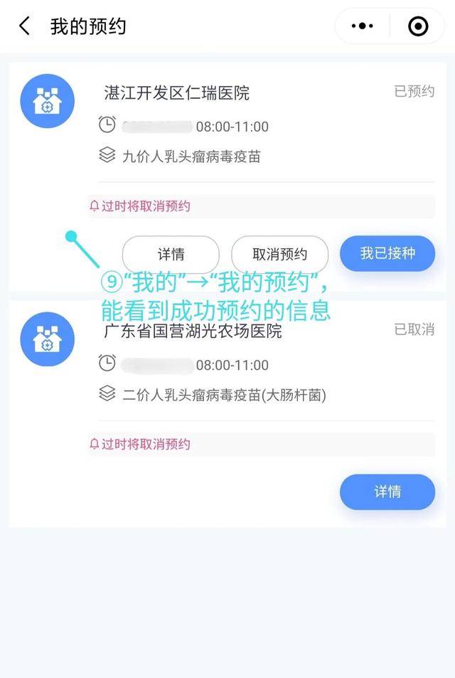 第九步,查看成功预约的信息。 点击“我的”→“我的预约”即可查看。