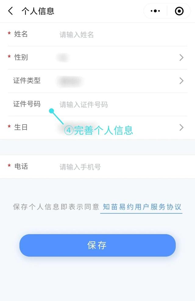 第三、四步,完善个人信息。 抢苗之前,先完善个人信息并确保信息无误。 点击首页右下角“我的”→“个人信息”,按要求填写个人信息,点击“保存”。