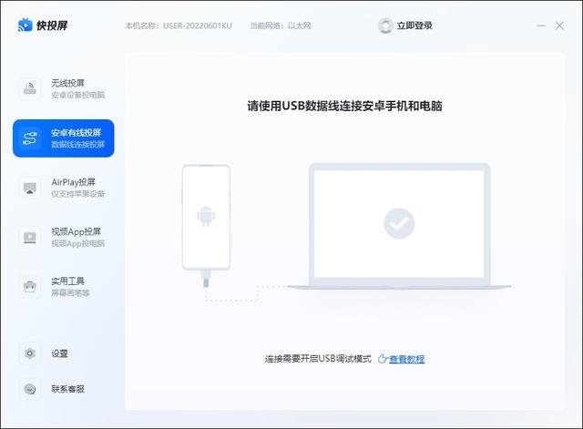 操作要点二:安卓有线投屏操作,则需要一根USB数据线,将手机和电脑连接后,打开安卓手机上的USB调试模式,给予手机权限才能完成画面的投屏;