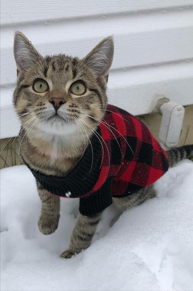 猫咪冬天有厚厚的毛发保护,不需要穿衣服,穿衣服会让猫咪觉得很不舒服。