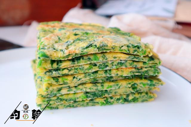 3:平底锅大多来一点油,放上一大勺荠菜面糊,煎到两面金黄熟透即可。