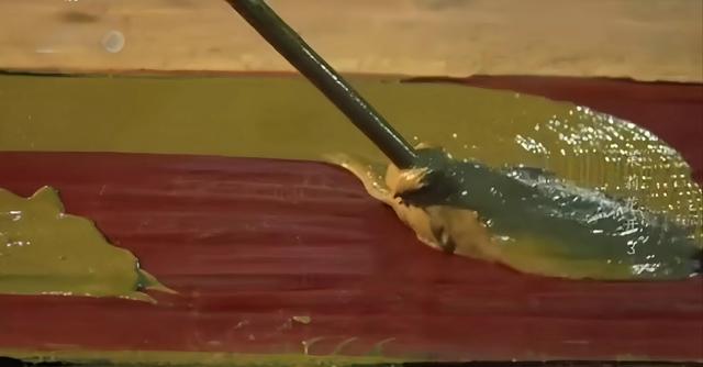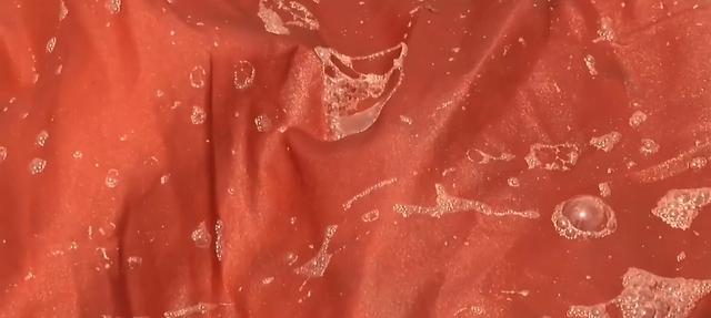 河泥也需要不断地过滤去除杂质,用工具进行均匀涂抹,过重或过轻,会使面料达不到合适的光泽度,涂抹河泥时不能照射阳光,否则会出现斑点。静置40分钟左右,等其发生化学反应后,把面料放到河里进行洗涤,把面料上的河泥清洗干净,再把面料放到草地上晒干,就会出现一面有金属般的黑色,一面是亮丽的褐色。没有过河泥的,我们叫它红云纱,它会呈现出薯莨的颜色。香云纱还有一个最大的特点,就是放的时间越长,它的光泽度越好,它就像一个陈年老酒一样。