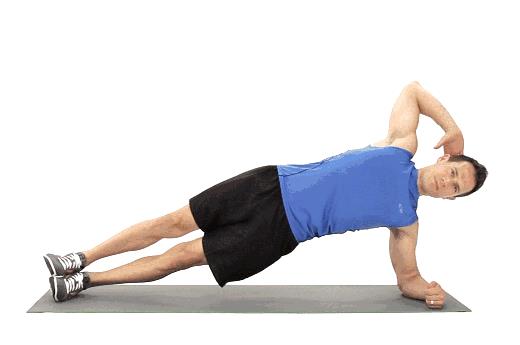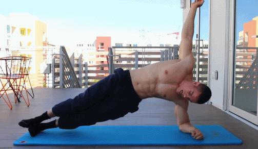 动作二、侧支撑提膝抬腿触肘 每侧10-15次,进行2组