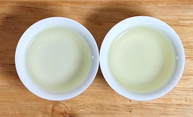 此泡敬亭绿雪的甜度更好一点,龙井茶汤协调性明显更强。香气也更稳定,口感稍好于敬亭绿雪。龙井茶生津回甘更好。
