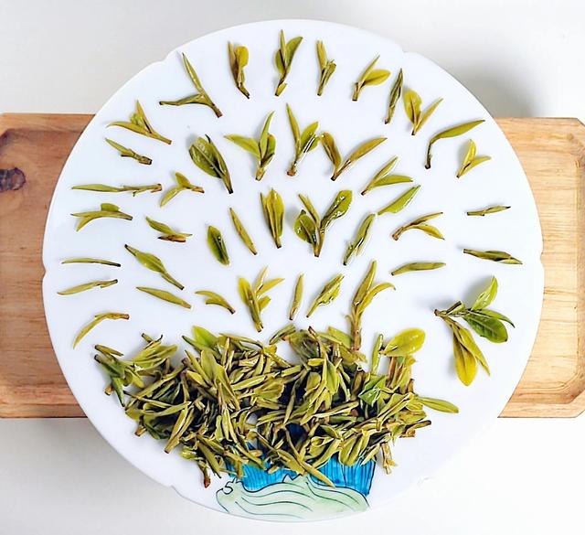 龙井:少量一芽一叶多为一芽:叶少量碎硬,用料不到特级。
