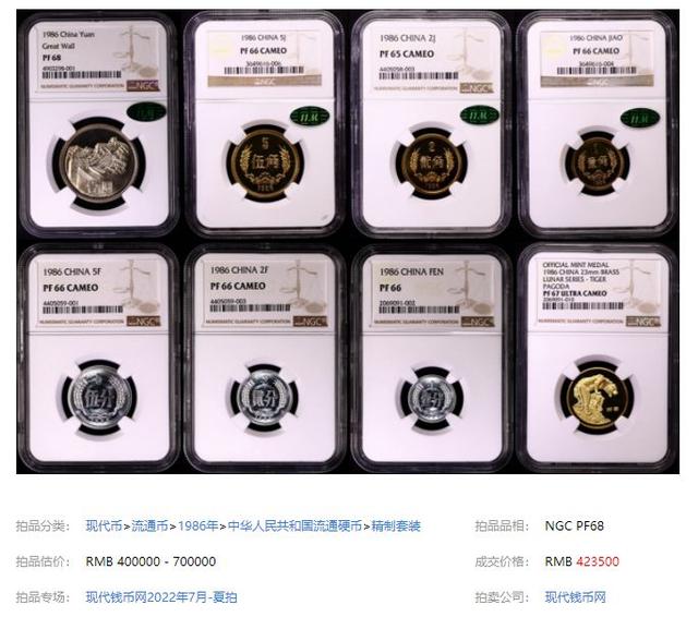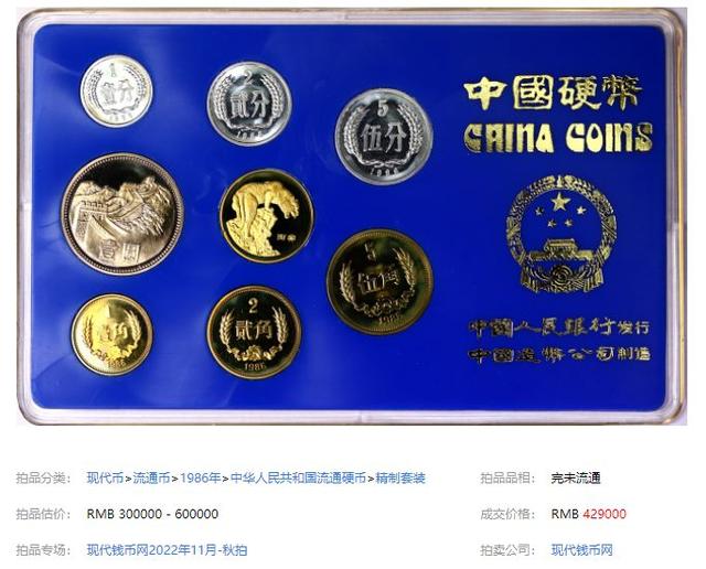 上面这套侧光无明显氧化的86年中国硬币,就在2022年的11月,拍了42.9万。