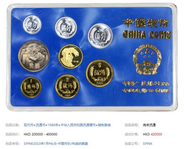在SPINK2023年的拍卖会中,一套86年的中国硬币,拍了42万港币。