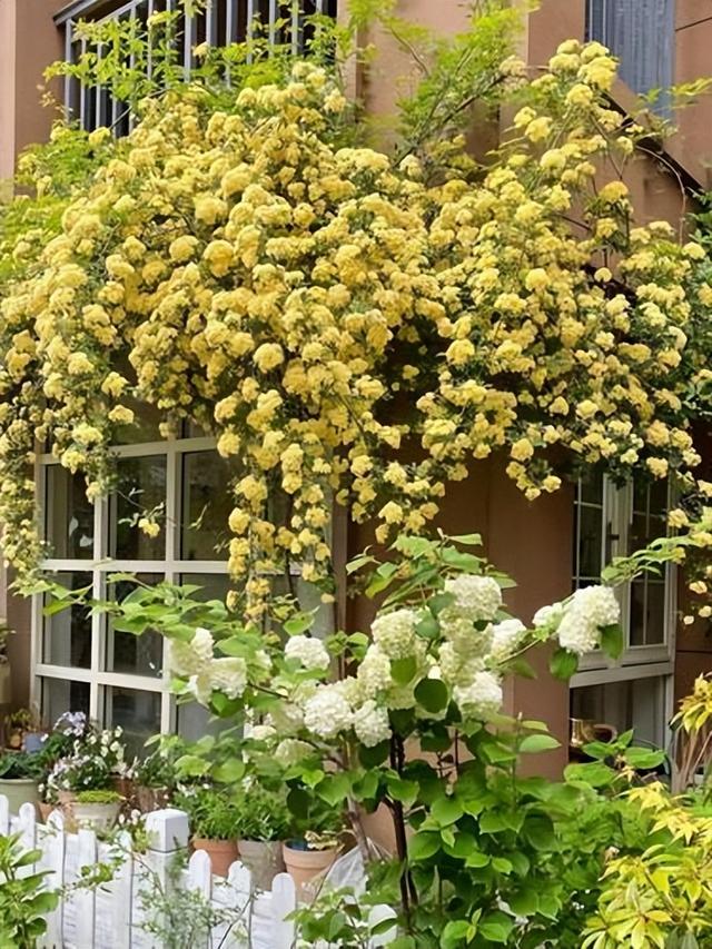 木香花是近两年比较流行的观赏花卉,早春开花,花色是娇艳的黄色,花量超大,花香浓郁,属于一种攀援小灌木,可以做成花墙、花篱笆,盛开之后,香气飘飘,娇艳明媚,十分好看。