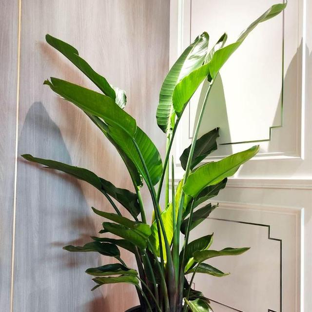鹤望兰也是比较常见的观赏植物,有开花的品种,有不开花的品种,纯室内养,建议养不开花的观叶品种,叶子大,株型美,养在家里很大气。