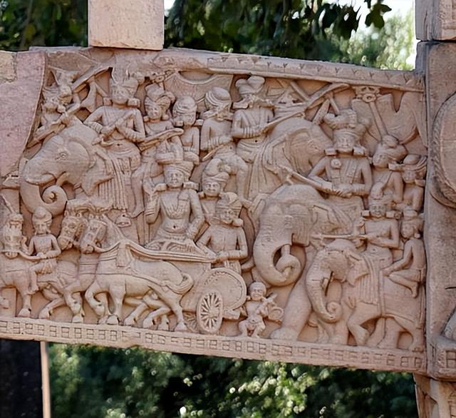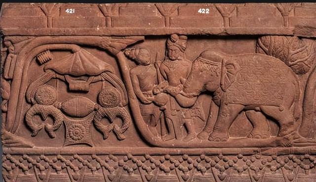 骑手有七人:两个拿着钩子,两个是弓箭手,两个是剑客,最后一个有长矛和一面旗帜。在公元前6世纪和5世纪,大象背着地毯,在佛教巴利语作品中称为hatthatthara。
