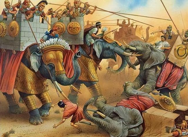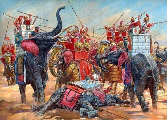 在这种情况下,大象弊大于利;他们践踏自己的部队,横行霸道,甚至可以把骑着他们的指挥官带离战场,这可以解释为逃跑,让他们的士兵惊慌失措,逃跑,或者干脆放弃战斗。