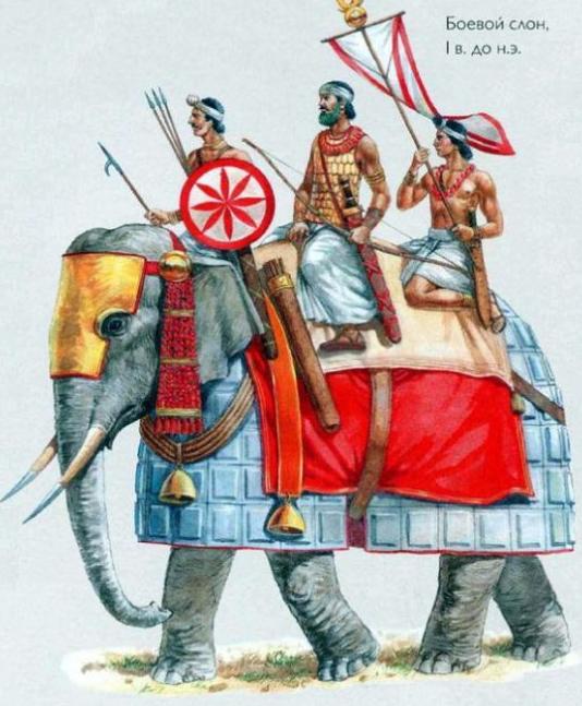 大象被用于古印度军队,不分地区、朝代或时间点;它们的重要性从未被否认,并一直持续到中世纪时期。