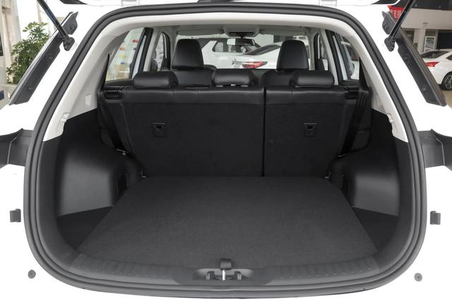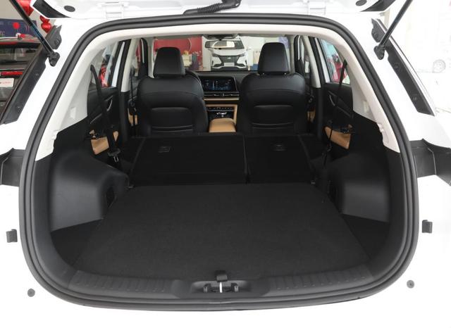 将后排座椅放倒之后,车厢最大进深1605毫米,内部高度780毫米,最小宽度975毫米,最大宽度1155毫米。车厢空间在同级别车型里面虽然不占优势,但装载能力也不弱。